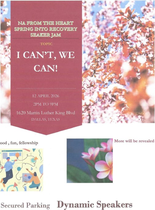 NA from the Heart is having a speaker jam on 12 April 2026 @ 1620 Martin Luther King Blvd from 2pm to 9pm!