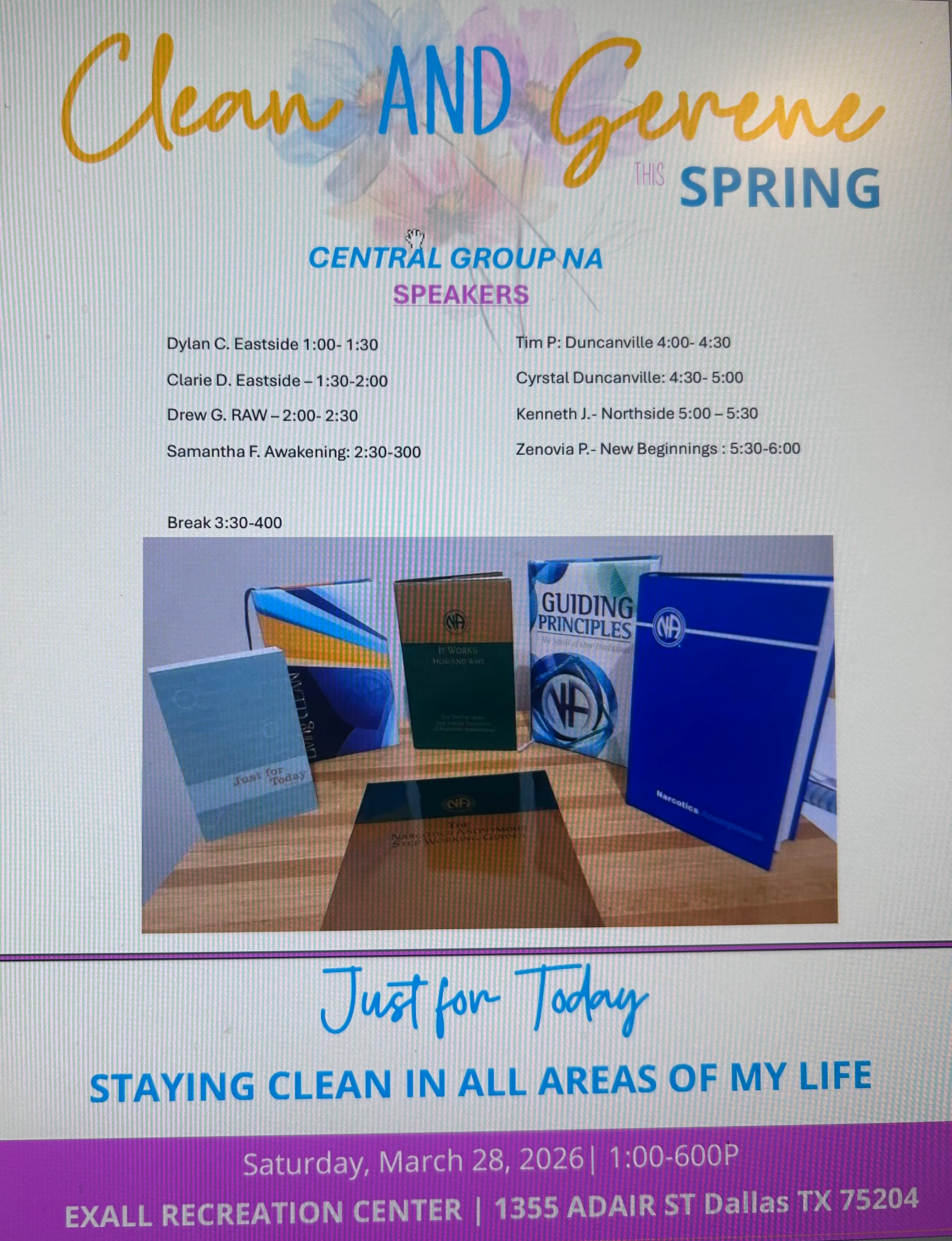 These are the upcoming events for the Dallas Area of Narcotics Anonymous: